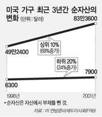 FRB는 2001년말 4000여가구를 상대로 광범위한 설문조사를 벌인 결과 98년부터 2001년까지 3년 동안 중간가구의 순자산은 10.4% 오른 8만6100달러(약 1억300만원)로 나타났다고 밝혔다. 중간가구란 가구 분포에서 중앙에 있는 가구를 뜻한다.