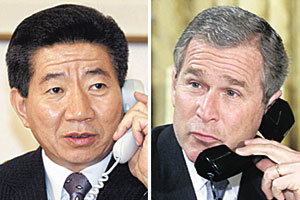 양국 정상의 이날 전화통화는 미국의 대 이라크 전쟁에 대한 한국정부의 지지에 감사의 뜻을 전하기 위해 미국측에서 요청해 이뤄졌으며, 오후 9시35분부터 15분가량 진행됐다.