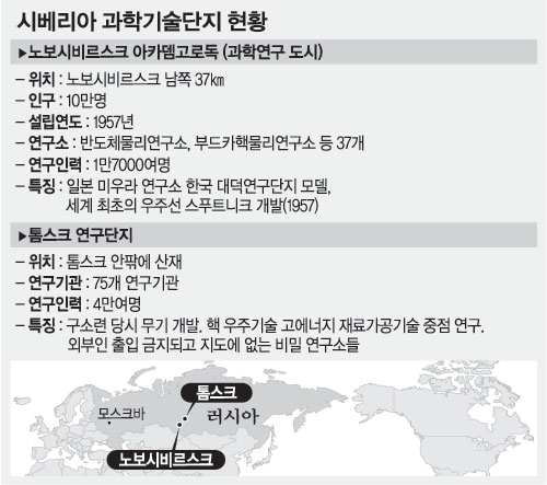 노보시비르스크 인근의 과학기술단지인 아카뎀고로독의 니콜라이 도브레초프 원장은 “시베리아는 에너지와 천연자원 못잖게 풍부한 과학기술력을 갖고 있다”며 “우리의 기초과학기술에 한국의 상용화기술과 투자가 결합하는 것이 가장 이상적인 조합”이라고 강조했다.