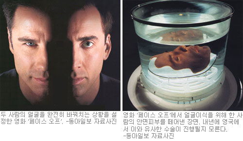 얼굴이식이란 죽은 자의 얼굴에서 피부와 피하지방층(영국팀)은 물론 신경과 근육(미국팀)까지 떼어내 이를 환자의 얼굴 속살에 붙이는 일이다. 의료진의 목표는 화상을 입거나 교통사고를 당해 얼굴이 심하게 손상된 환자를 치료하는 일. 자신의 신체 일부로 이식하기에는 상처가 매우 심각한 경우다. 수술받는 사람의 골격은 거의 그대로 유지되기 때문에 영화 ‘페이스 오프’에서처럼 다른 사람과 똑같은 얼굴로 뒤바뀌는 일은 없다.