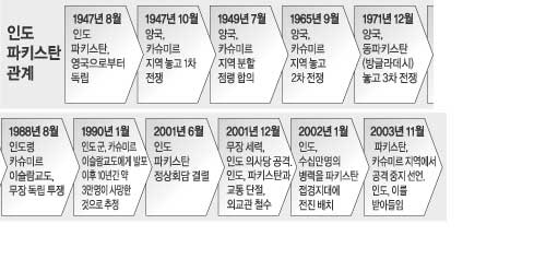 양국은 미국의 압력으로 2002년 10월 군대를 철수했으며 바지파이 총리는 지난해 4월 “생전에 파키스탄과의 평화관계가 이뤄지는 걸 보고 싶다”는 뜻을 밝히기도 했다. 11월 파키스탄은 국경분쟁을 겪고 있는 카슈미르 지역에서 공격을 중단했으며 인도도 같은 조치를 취했다. 이어 12월 무샤라프 대통령은 파키스탄이 주장해온 카슈미르 지역 분리독립에 대한 주민투표 제안을 철회할 수도 있다고 밝혔다.