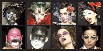 오트쿠튀르 쇼는 의상뿐 아니라 모델의 헤어스타일과 메이크업도 드라마틱하다.구체적인 상품보다 '메시지'와 '원형적 이미지'에 승부를 거는 것이 '오트쿠튀르 정신'이기 때문일까. '토렌테'쇼에 선 모델들의 얼굴.