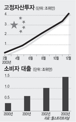 기업 대출도 마찬가지. 지난해 중국의 총투자는 국내총생산의 거의 절반이나 된다. 상당 부분은 은행 대출을 통해 이뤄졌다. 중국에는 지난해 말 현재 자동차 제조업체가 100개나 되고 시멘트 공장은 4813개나 된다. 은행돈을 빌려 중복투자가 이루어지고 있는 것.