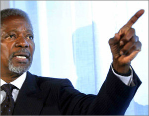 아난 총장은 9월 BBC방송과의 인터뷰에서 이라크전쟁을 ‘불법’이라고 규정했다. 10월에는 유엔 전범재판소 재판관들이 사담 후세인 전 이라크 대통령 등을 재판할 이라크 판사 훈련에 참여하지 못하게 했다. 또 2주 전에는 미국 영국 이라크 정부에 서한을 보내 팔루자 공세가 이라크를 더 고립시키고 내년 1월 선거를 방해할 수 있다고 경고했다.