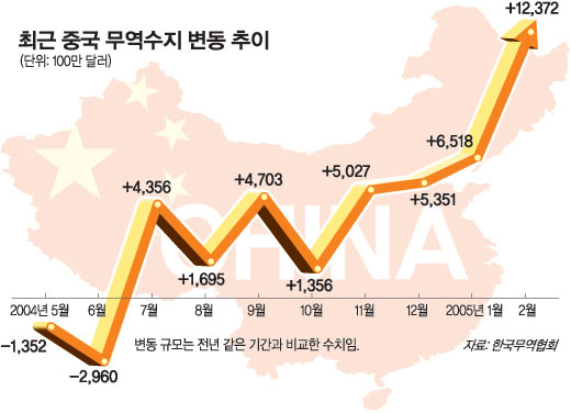 이를 두고 전문가들은 2004년 1, 2월에는 79억 달러의 무역수지 적자를 본 데다 2004년 한해 흑자 총액이 320억 달러였던 것에 비해 올해 첫 두 달의 흑자 규모는 ‘비정상적’인 것이라고 분석했다.