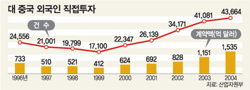 ▽중국 왜 달라졌나=1, 2년 전만 해도 각종 세제 혜택을 주면서 외국 자본을 끌어들이기에 바빴던 중국이 달라진 표면적인 이유는 경기 과열 우려 때문이다. 2001년 말 세계무역기구(WTO) 가입 후 급증한 외국인 투자 때문에 중복 투자가 이뤄지고 경기가 과열됐다는 것.