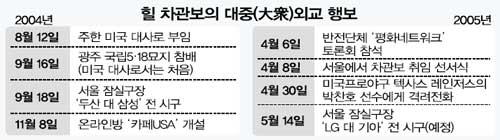 지난달 30일에는 텍사스 레인저스의 박찬호 선수에게 격려전화를 해 “나는 당신의 열렬한 팬이다. 그러나 내일(31일) 보스턴전에서는 살살 좀 던져 달라”고 너스레를 떨기도 했다.