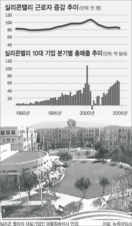 최근 ‘구글’의 대박신화에서 알 수 있듯이 실리콘밸리 경제는 완연한 회복세를 보이고 있다. 지난해 실리콘밸리 100대 기업의 총매출은 3360억 달러로 2003년에 비해 14% 늘어났다.
