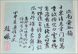 이 절의 주지격인 이치조 후미아키(一조文昭) 노사(老師)는 조선통신사 관련 시문첩(詩文牒)을 사찰 ‘보물고’에서 꺼내와 보여 주었다.