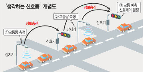 새 시스템은 도로에 설치된 감지기가 몇 초 단위로 차량 통행량과 속도 등을 측정한 뒤 관련 데이터를 앞의 신호기로 전송하면 신호기는 이 정보를 토대로 교통 상황을 예측해 신호등 점멸 시간을 자동 조절하는 방식이다.