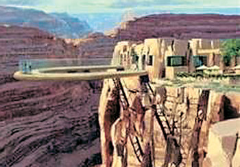 AP통신 등에 따르면 미국 서부의 그랜드캐니언 절벽과 절벽 사이 공간에 유리로 된 공중보도(조감도)가 설치돼 내년 1월경 관광객에게 개방될 예정이다. 그랜드캐니언 국립공원 내 절벽 한쪽에 말발굽 모양으로 만들어질 이 보도는 허공으로 21m나 나가 있다. 바닥과 양쪽 난간이 모두 유리로 제작되며, 강철 빔을 사용해 약 120명의 무게를 지탱할 수 있도록 설계된다.