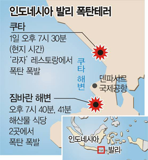 세계 최대 이슬람국가인 인도네시아의 휴양지 발리에서 1일 저녁 3건의 연쇄 폭탄 테러가 발생해 130여 명의 사상자가 났다.
