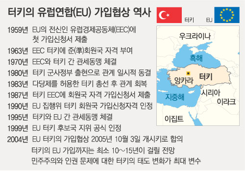 1959년 터키가 EU의 전신인 유럽경제공동체(EEC)에 가입신청서를 낸 지 무려 46년 만의 일이다.
