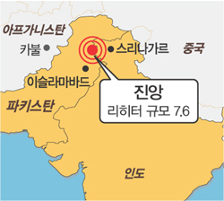 이번 지진의 최대 피해 지역인 파키스탄 동북부 산간 마을들은 산사태와 건물 붕괴로 폐허로 변했다. 400여 명의 어린이들이 무너진 학교 건물에 깔려 떼죽음을 당했다. 페르베즈 무샤라프 파키스탄 대통령은 “비극적 사태에 제대로 대응하기 위한 재정 지원이 필요하다”며 국제사회의 긴급 지원을 호소했다.