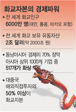 그러나 해를 거듭하면서 화상대회는 세계 각국이 눈독을 들이는 행사로 변모했다. 세계 6000만 화교 인구의 네트워크와 이들이 가진 약 2조 달러(약 2000조 원)의 자금력 때문이다. 화교 자본의 파워는 화상대회를 치른 캐나다와 호주에서 여실히 증명됐다.