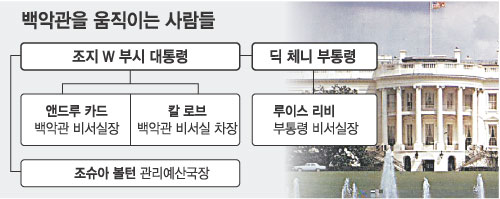 로브 차장은 부시 대통령, 체니 부통령, 앤드루 카드 백악관 비서실장, 조슈아 볼턴 관리예산국(OMB·백악관 직속) 국장과 함께 백악관 내의 주요 결정을 막후에서 조율하는 멤버로 알려져 있다.