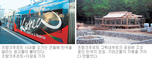 한국 작가들의 문학 강연회 및 토론회도 계속 열리고 있다. 시인 고은 씨를 비롯해 김지하 정현종 이문열 서정인 김원일 오정희 은희경 조경란 김연수 씨 등 한국 작가 30여 명이 참가 중이다. 주빈국관 행사를 치르고 난 뒤 2, 3년 안에 그 국가에 노벨 문학상이 돌아간 경우가 많아 특히 관심을 끌고 있다. 그러나 아쉬운 대목도 있다. 우선 시내의 거리 홍보가 부족하다. 전철에 광고물이 부착되긴 했지만 전체적으로 한국문화 축제 분위기를 알리기엔 부족한 편. ‘직지심경’이 전시되는 마인 강변 통신박물관 앞 거리엔 홍보 플래카드조차 붙어 있지 않다.