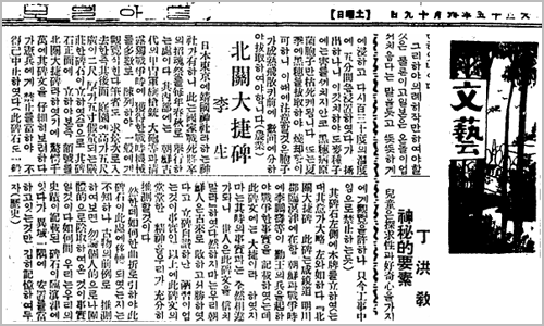 | ▲ 당시 동아일보 문예면에 실린 이생(李生)의 기고문 |