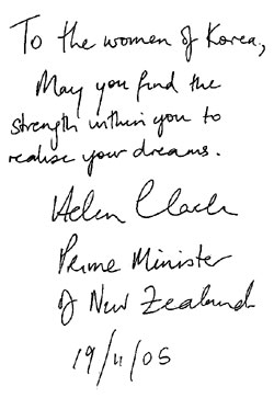 ![]() ‘부디 당신의 꿈을 이룰 내재된 능력을 찾기 바랍니다.’ 헬렌 클라크 뉴질랜드 총리 2005년 11월 19일 |