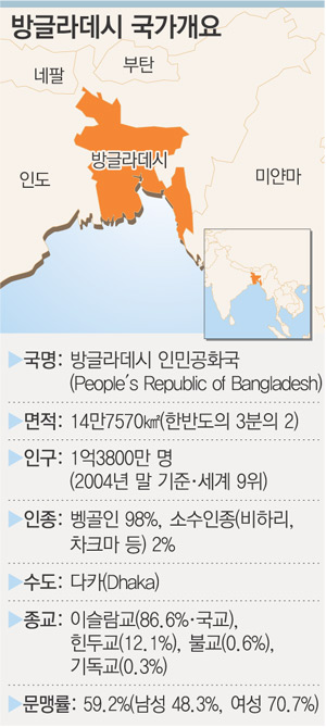 ▽구걸로 연명=방글라데시는 인구밀도가 세계 최고이고 1인당 국민소득은 300달러에 불과한 세계 최빈국 중 한 곳. 하루 1달러도 못 버는 극빈층이 40%에 달한다.