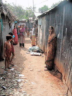 ![]() 방글라데시 수도 다카의 한 빈민촌. 이곳 거주민들은 한 달 5만 원의 집세를 내지 못해 2, 3가구가 10평도 되지 않는 작은 슬레이트 집에서 함께 산다. 다카=정효진 기자 |