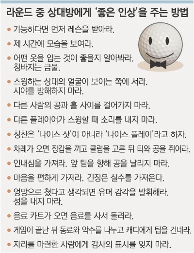 특히 실수가 거듭될 때 상대방의 성격이 고스란히 드러난다고 그는 설명했다. 캐디 등 타인에게 책임을 돌리거나, 클럽 탓을 하거나, 안절부절못하는 사람은 업무에서도 비슷한 행동을 하기 쉽다.