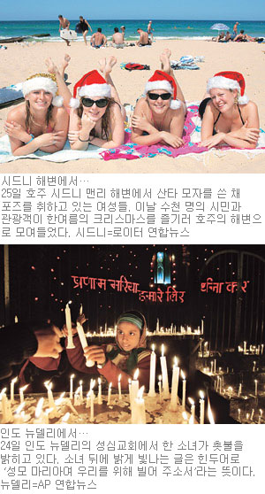 ○…자연재해와 테러로 신음한 지역에도 아기 예수 탄생 소식은 어김없이 찾아 왔다. 지진해일(쓰나미) 참사를 겪은 인도네시아 아체 주와 허리케인 카트리나가 휩쓴 미국 뉴올리언스에서는 신도와 희생자 가족들이 교회에 모여 성탄예배를 드리며 희생자들의 넋을 기렸다. 지진참사를 겪은 파키스탄에서도 구호단체들이 아이들에게 선물을 나눠 주는 등 성탄절을 즐겼다. 이라크 주둔 미군도 이날만은 잠시 긴장을 늦추고 예수 탄생을 축하했다.