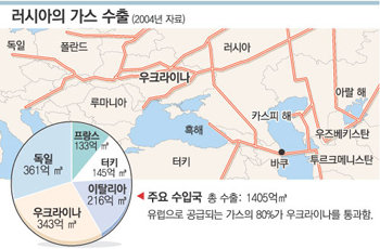 ▽최악의 사태 오나=전체 가스 소비량의 30%를 러시아에 의존해 온 우크라이나는 당장 큰 타격을 입게 됐다. 수도 키예프 등 대도시의 난방이 중단될 수도 있기 때문이다. 우크라이나 정부는 “몇 주 동안 버틸 수 있는 분량의 가스를 저장하고 있다”고 밝혔으나 구체적인 재고량은 알려지지 않고 있다.