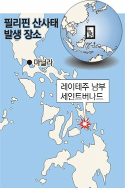 현지 TV와 외신에 따르면 산사태로 레이테 주 세인트버나드의 기온사우곤 마을 500여 채의 집과 초등학교가 진흙 더미에 파묻혔다. 참사는 최근 2주간 내린 폭우로 지반이 약화되면서 일어났다.