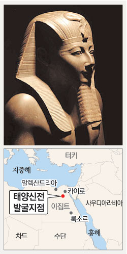 카이로 동쪽의 벼룩시장인 수크 알 카미스 지하에서 태양신전과 함께 발견된 람세스 2세의 ‘흔적’ 중에는 그의 모습인 것으로 짐작되는 분홍색 화강암 조각상(무게 4∼5t), 람세스 2세의 이름이 들어 있는 상형문자가 새겨진 파라오(고대 이집트 왕)의 좌상(높이 1.5m)이 포함돼 있다. 신전 바닥은 포장돼 있었다.