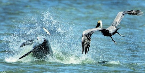 돌고래와 펠리컨의 먹이다툼