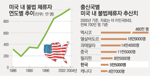 진통의 핵심은 조지 W 부시 대통령이 2004년 초 제시한 ‘게스트 노동자(Guest Worker)’ 조항을 법안에 넣느냐 마느냐다. 비록 현재 불법 체류 외국인이라도 당국에 자진 신고한 뒤 위조가 불가능한 허가증을 정식으로 발급받아서 3년씩 2차례, 최장 6년까지 합법적으로 일할 수 있도록 해 주자는 구상이다. 단, 그 일자리가 ‘미국인은 희망하지 않는 (허드레) 일’임을 고용주에게서 확인받아야 한다.