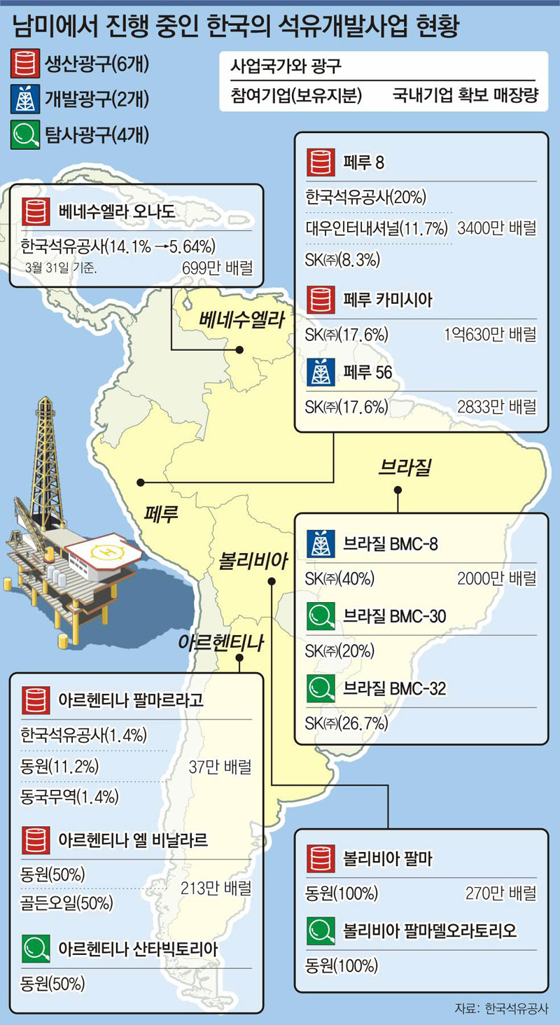 노 팀장은 “남미의 정치상황이 불안정해 올해부터 해외 석유개발 투자대상에서 남미지역을 후순위로 분류하고 있다”고 말했다.