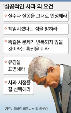 세계적인 경영학술지인 하버드 비즈니스 리뷰(HBR) 4월호는 과거 정치 및 재계 지도자가 했던 사과의 성공 및 실패 사례를 분석하는 논문을 실었다.