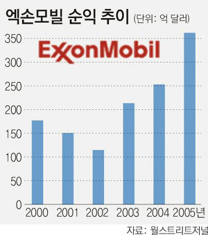 ▽얼마나 벌었기에=시민운동단체들이 엑손모빌을 공세 목표로 삼은 것은 상징적 의미가 크다. 엑손모빌은 지난해 3710억 달러의 매출을 올리며 5년 만에 월마트를 누르고 미국 최대 기업에 올랐다.
