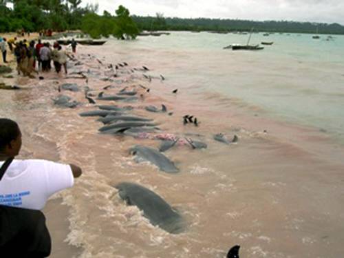 아프리카 탄자니아 앞바다의 잔지바르섬 북부 해안에 최소 400마리 이상의 돌고래가 떼죽음을 당한 상태로 발견됐다고 AP 통신이 9일 보도했다.
