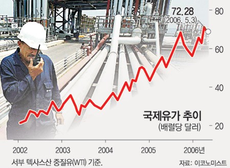 ▽미국-중국 에너지 대격돌=전문가들은 석유 국유화 조치 외에 이란 핵 문제, 이라크전쟁, 나이지리아 소요 사태, 허리케인 피해 등 갖가지 악재가 겹치면서 한동안 유가가 내릴 가능성은 희박한 것으로 보고 있다.