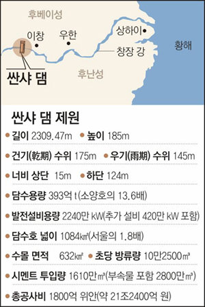 ▽싼샤 댐은 한국에 재앙(?)=한국은 싼샤 댐에서 2000km 이상 떨어져 있지만 상당한 영향을 받을 것으로 예상된다.