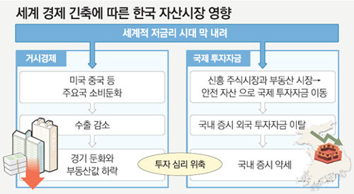 현대경제연구원 유병규 경제본부장은 “증시 하락은 투자자들의 심리를 얼어붙게 만들어 당분간 부동산 거래는 끊길 것”이라며 “이런 상황에서 경기 둔화까지 겹친다면 소비심리 위축으로 이어질 것”이라고 전망했다.