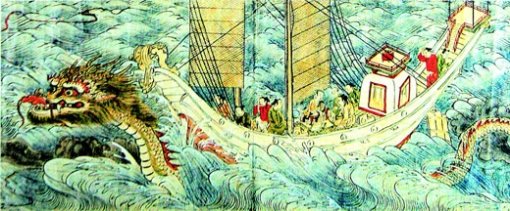 일본 교토의 고잔사가 소장하고 있는 13세기 가마쿠라 시대의 회화 작품 화엄종조사회전이 교토국립박물관의 특별전에 출품됐다. 화엄중종사회전은 신라 승려 원효와 의상에 관한 설화를 2점의 그림으로 묘사한 것. 이작품은 중국 유학을 마치고 돌아오는 의상 대사 일행의 배를 용이 안전하게 안내하는 모습을 담은 것이다. 그림에 나오는 용은 의상을 사모하다 죽은 선묘라는 여인의 화신이라고 한다. 교토= 연합뉴스