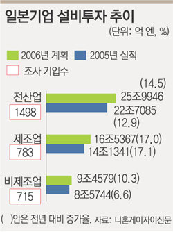 니혼게이자이신문은 일본의 주요 민간기업 1498개사를 대상으로 조사한 결과 2006 회계연도(2006년 4월∼2007년 3월) 설비투자 규모가 25조9946억 엔(약 219조 원)으로 전년보다 14.5% 늘어날 것으로 보인다고 29일 보도했다.
