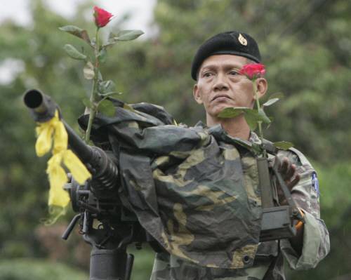 이곳은 태국 정부 청사 인근 거리라고 합니다. 동네 꼬마들이 군인 아저씨랑 기념촬영을 하고 있습니다. 사진을 전송하는 외신들을 쿠데타 군을 환영하는 방콕 시민들을 '지지자'라고 표현하고 있습니다만 사진에서 보이는 사람들의 모습에서 그런 정치적 분위기는 별로 느껴 지지 않습니다.
