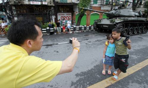 일부 외신은 쿠데타가 발생했는데도 불구하고 방콕시민들은 별다른 동요를 보이지 않고 있다고 전하고 있습니다. 연합뉴스는 수백명의 시민들이 카메라를 들고 나와 정부청사 인근에 배치된 탱크를 배경으로 기념촬영을 했다고 보도했습니다.