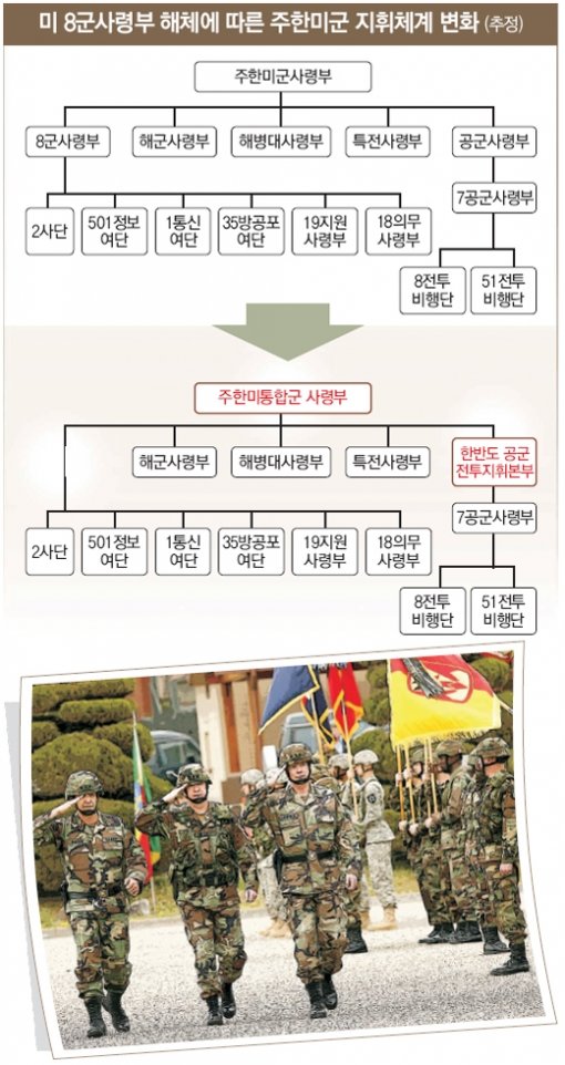 ▽주한미군 지휘체계 개편=미 8군 사령부가 2008년까지 해체되고 2009년 한국군이 전시작전권을 환수하게 되면 주한미군의 지휘 체계는 많은 변화가 예상된다.