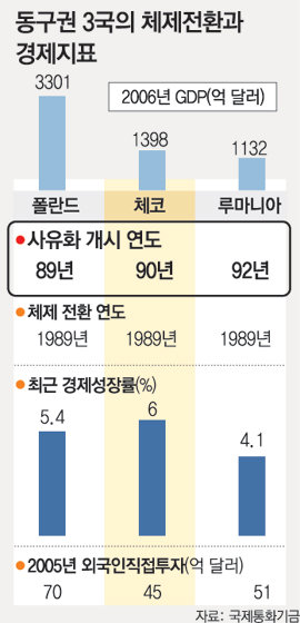 대규모 사유화 조치와 시장경제 전면 도입이 루마니아나 불가리아보다 1, 2년 앞섰던 헝가리와 체코도 2000년 이후 연간 6%대의 성장률을 보이고 있다.