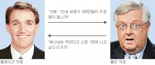 “젠장, 아무것도 모르는 자가 헛소리를 지껄이는 걸 그냥 둘 수 없다.…예산 낭비를 막았다고 신문 1면에 나오고 싶다 이거지? 분명히 말해 두는데 이건 낭비가 아니다.”(커트 웰던 의원)