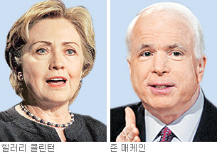 응답자들은 힐러리 의원과 매케인 의원이 각각 민주당과 공화당의 최종 주자로 나섰을 경우 누구를 찍겠느냐는 질문에 47% 대 47%의 지지율을 보여 박빙의 시소게임을 벌일 것으로 예상됐다.