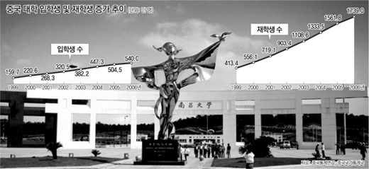 대학 입학생도 급속히 늘었다. 1999년 159만7000여 명에 불과했던 입학생 수는 지난해 540만 명으로 7년 만에 3.4배로 늘었다. 그러나 대학이 학생에게서 받는 학비만으로는 투자금액의 이자를 갚기도 어려웠다.