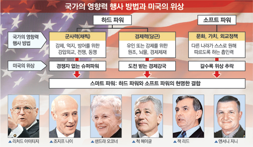 하드 파워 일변도 전략은 불과 10여 년 전까지 ‘아메리칸 드림’으로 상징되던 미국의 소프트 파워조차 약화시켰고 그 대신 ‘거친 골목대장’ 이미지가 굳어져 가고 있다. 아미티지 전 부장관도 “9·11테러 이래 미국은 두려움과 노여움을 수출해 왔다”며 “미국적 특성과 희망, 열정, 낙관의 가치를 수출해야 한다”고 설명했다.