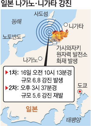 일본 기상청과 재해 당국에 따르면 이날 오전 10시13분께 니가타 앞 바다를 진앙으로 하는 강진이 발생한데 이어 오후 3시30분께 규모 6 가량의 지진이 재차 발생하는 등 여진이 이어지고 있어 니가타와 나가노 일대에서 인명 및 재산 피해가 늘고 있다.